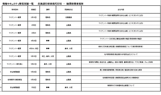 ■全従業員を対象に、当分の間、特定個人情報及び個人情報取扱に関する「