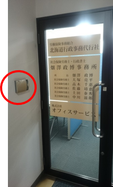事務所入り口ドアは、強化された防犯ガラスを設置しています。
